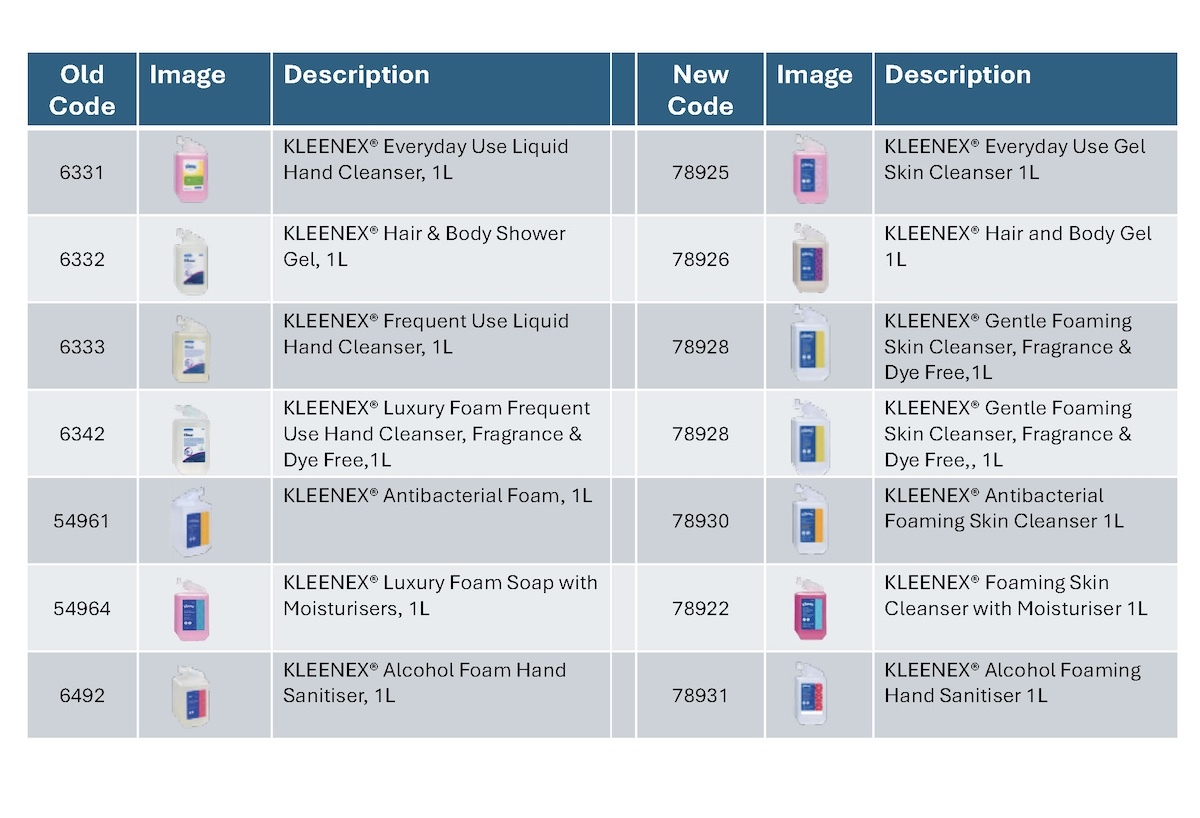 Kimberly Clark are rebranding their hand soap products with new SKU's and new packaging. Many of the formulations have remained the same a few of the SKU's have been discontinued.