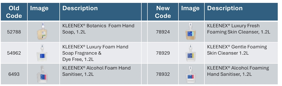 Kimberly Clark are rebranding their hand soap products with new SKU's and new packaging. Many of the formulations have remained the same a few of the SKU's have been discontinued.